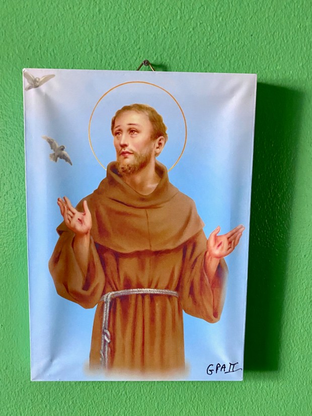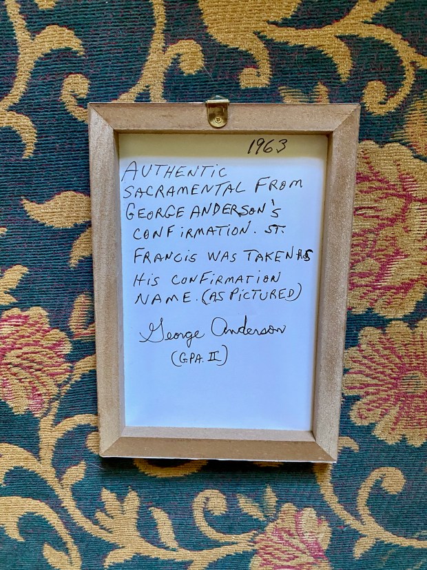 This St. Francis of Assisi sacramental was a gift for my confirmation. I chose Francis as my confirmation name. As many of you know, I have a great affinity for St. Francis, as he is the patron saint of animals and the environment. You can bid on this sacramental with my personal inscription on the back now on eBay.