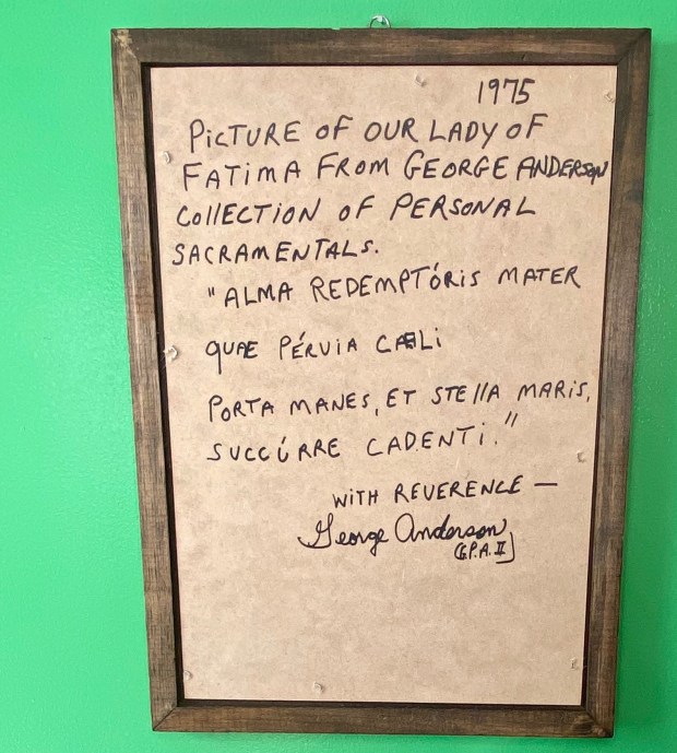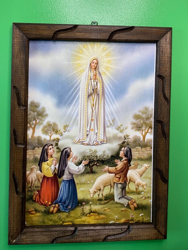 I purchased this Our Lady Of Fatima plaque on a trip I made with my parents to the shrine in 1975. This beautifully framed plaque is in pristine condition and comes personalized by me with a passage from one of my favorite prayers.
