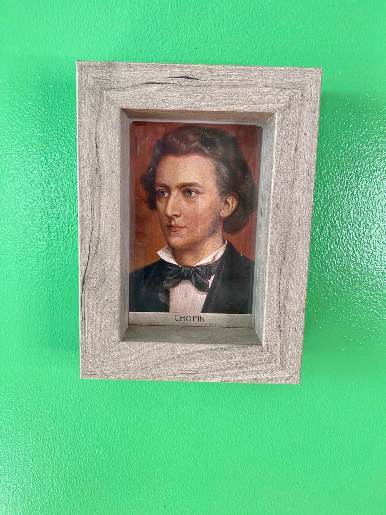 I continue to clean out my closets. Now available on eBay this beautifully kept photo of one of my favorite composers, Chopin, given to me as a gift many years ago. In excellent condition, this framed photo measures 7.5″ x 5.5″ x 1.75″ and is signed on the back by me.