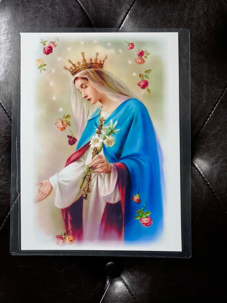 You have just one day left to bid on items from my personal collection on eBay, including this plaque of St. Philomena given to me while I was still a student at Our Lady Of Perpetual Help. Measuring 3″ x 4.5,” it’s personalized by me.