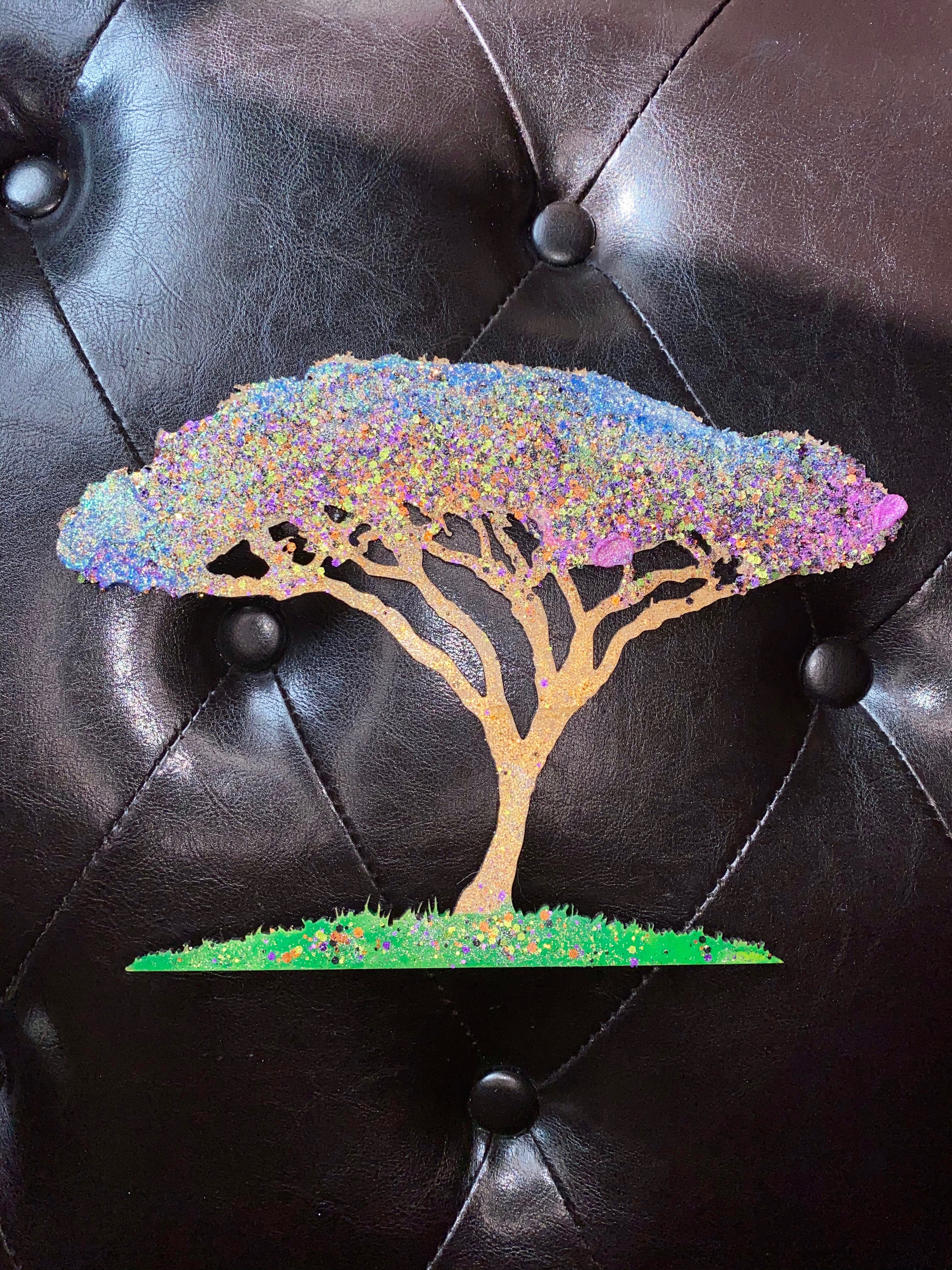 I have new artwork available on eBay. You can bid on all my new pieces including “The Tree of Life #3” and “Mardi Gras.” I created both using melted wax, acrylic paint, nail polish and glitter. Just search George Anderson Art on eBay.