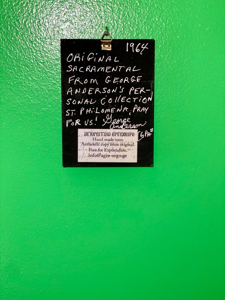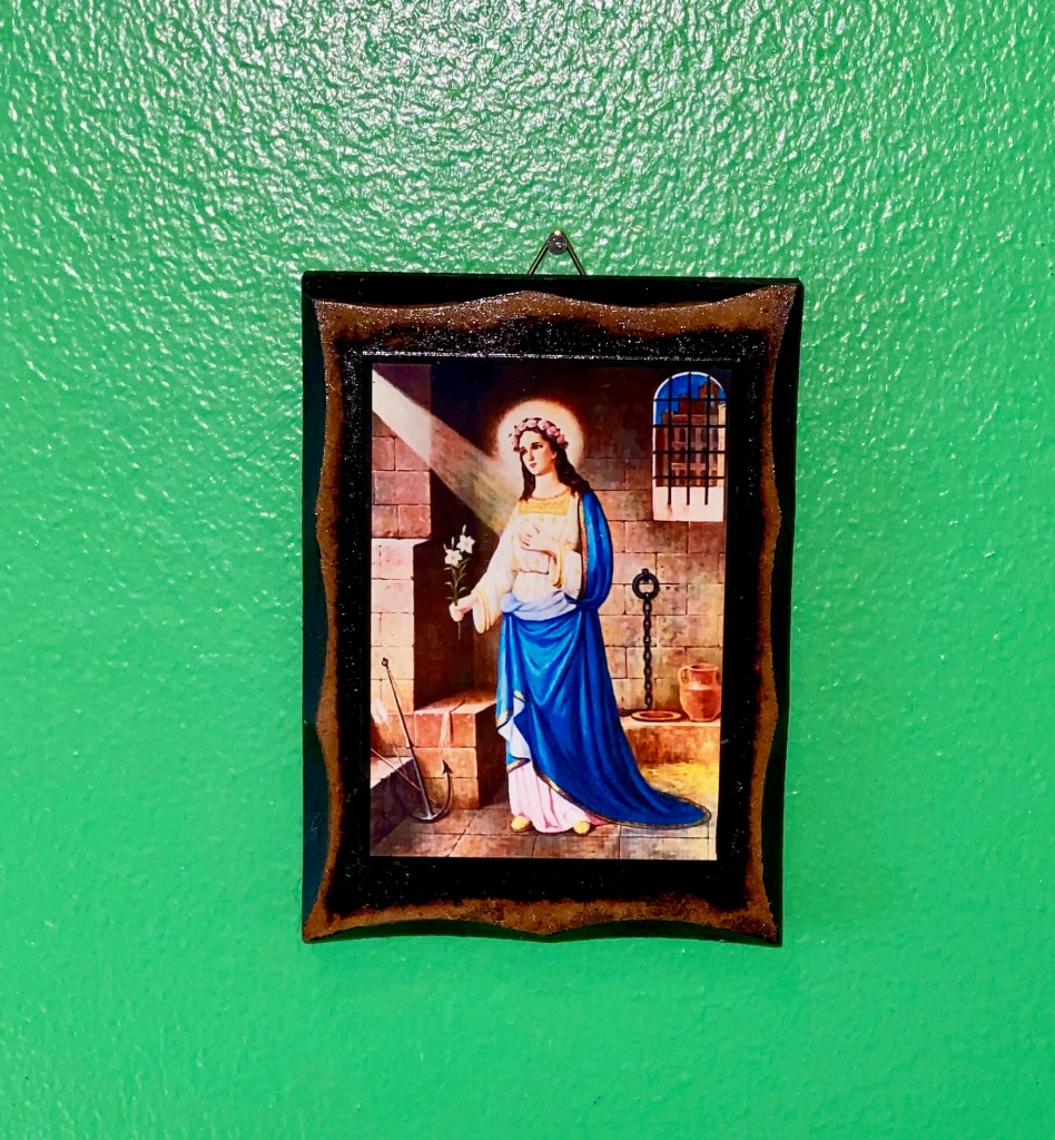 You have just one day left to bid on items from my personal collection on eBay, including this plaque of St. Philomena given to me while I was still a student at Our Lady Of Perpetual Help. Measuring 3″ x 4.5,” it’s personalized by me.