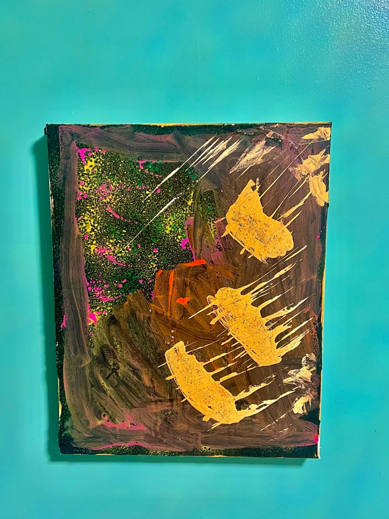 There are only a few hours left to bid on my latest artwork including “A New Cosmos”. I created this piece using a combination of acrylic paint, spray paint and dyed plaster on a 16″ x 20″ canvas. As a huge fan of Science Fiction, Space and UFO’s, I allowed myself to let my imagination run free.